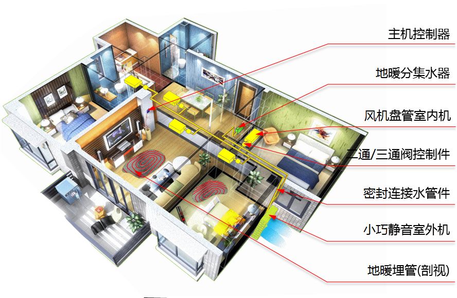 (更安静:空调制冷安静柔和,地暖制热宁静无噪音)