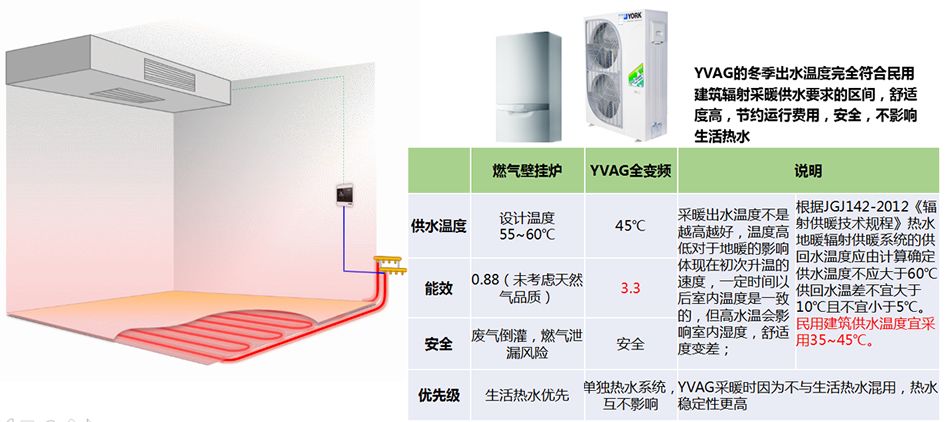 ③采用YORK家用水系统中央空调二合一系统,一机两用运行费用比天然气费低很多,舒适度更高;