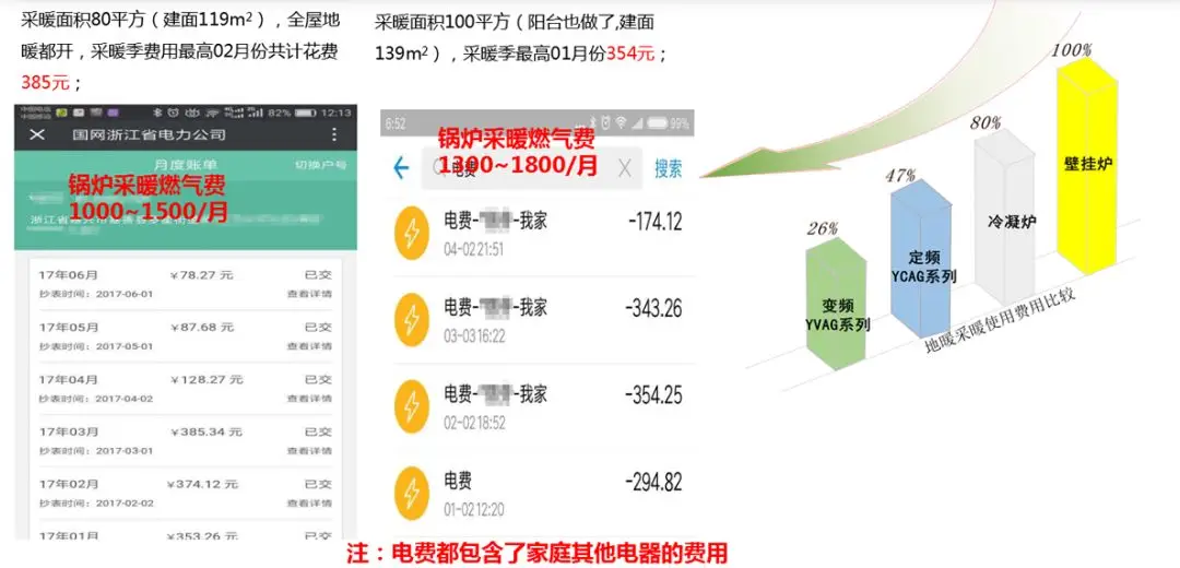 ②有阶梯电价与阶梯燃气费标准,天然气费用很高,冷暖应用舒适度差运行费用高;