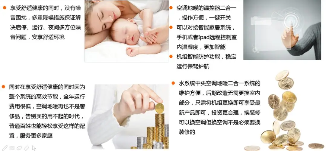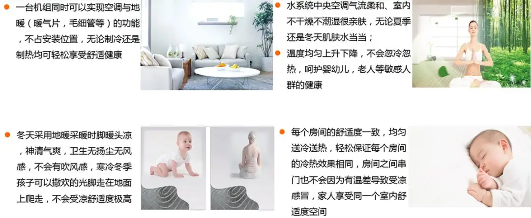 ①安全无害:室内管道里面是水,完全没有氟利昂泄漏风险,保证室内空气品质,呵护婴儿敏感的呼吸道,保护家人健康